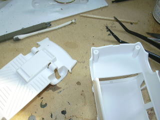まずは、後部に搭載されたエンジンを適当に再現すべく、エッチングのこを使って