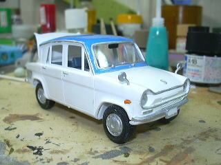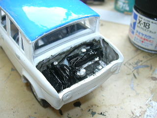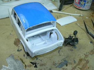 ボディー色は白と水色のツートンカラーで行こうと思ったものの、横着をして、白はホワイトサーフェーサーで