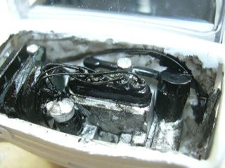 エンジン部分の拡大画像。 下の写真は参考にした実車写真です。 (リストア中につき、赤いテープが目立ちます)