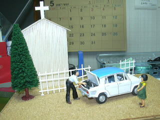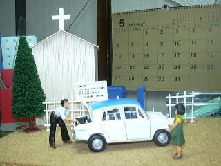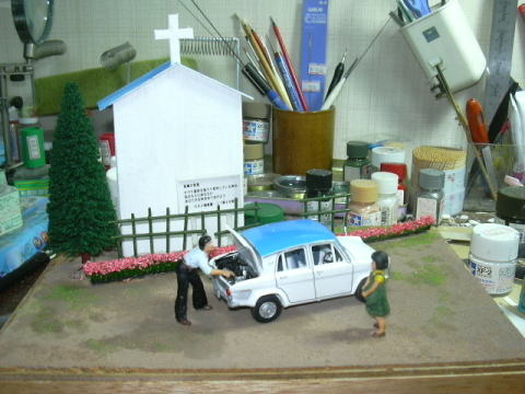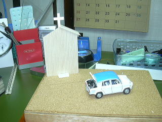 ということで、教会はバルサ板で、十字架はスチレンボードの切り出し、柵や樹木は昭和の歳時記のキットから