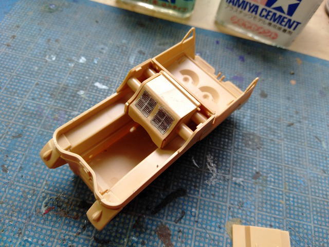 エンジンカバーのネットはエッチングパーツ、しかしながらく放置していた瞬間接着剤は固まって