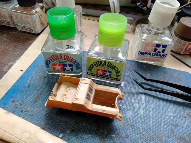 押し込んだものの、合わせ目に使おうとした速乾性流し込み接着剤、ものの見事に干上がっていた。😰