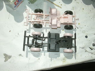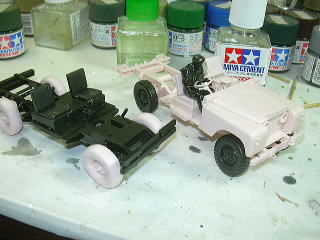 入れ換え、野戦救急車の方にバルーンタイヤを取り付けて砂漠仕様車としようかという思いたちでした。