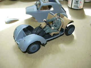 車内の塗装とフィギュアの塗装も終わったのでボディを接着しました。