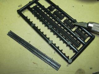 キャタピラの組立です。どうもここが最初から一番気になっていた部分で、どうも気が進みません。