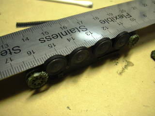 まずは、転輪の並びを揃えるために鋼製スケールでまっすぐに整えてみました。