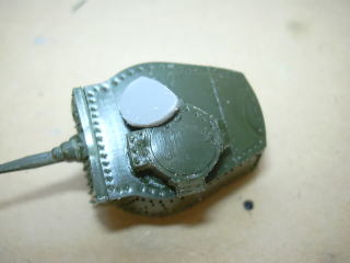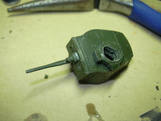 砲塔のハッチの部分を開口します。 ピンバイスでし穴を開けた後、ヤスリを使って半円形の搭乗口を開けました。