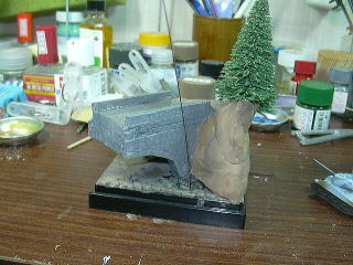 久しぶりに続きをやります。 山と石橋を塗装しました。